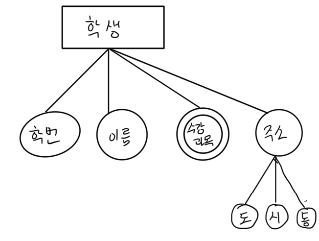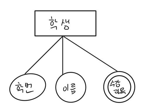 -> E-R 다이어그램에서 이중 타원으로 표현
