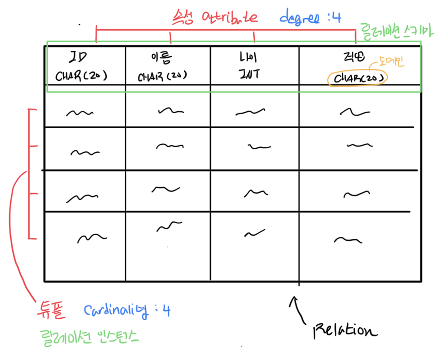 - 카디널리티 (Cardinality) : 하나의 릴레이션에 있는 튜플의 개수
