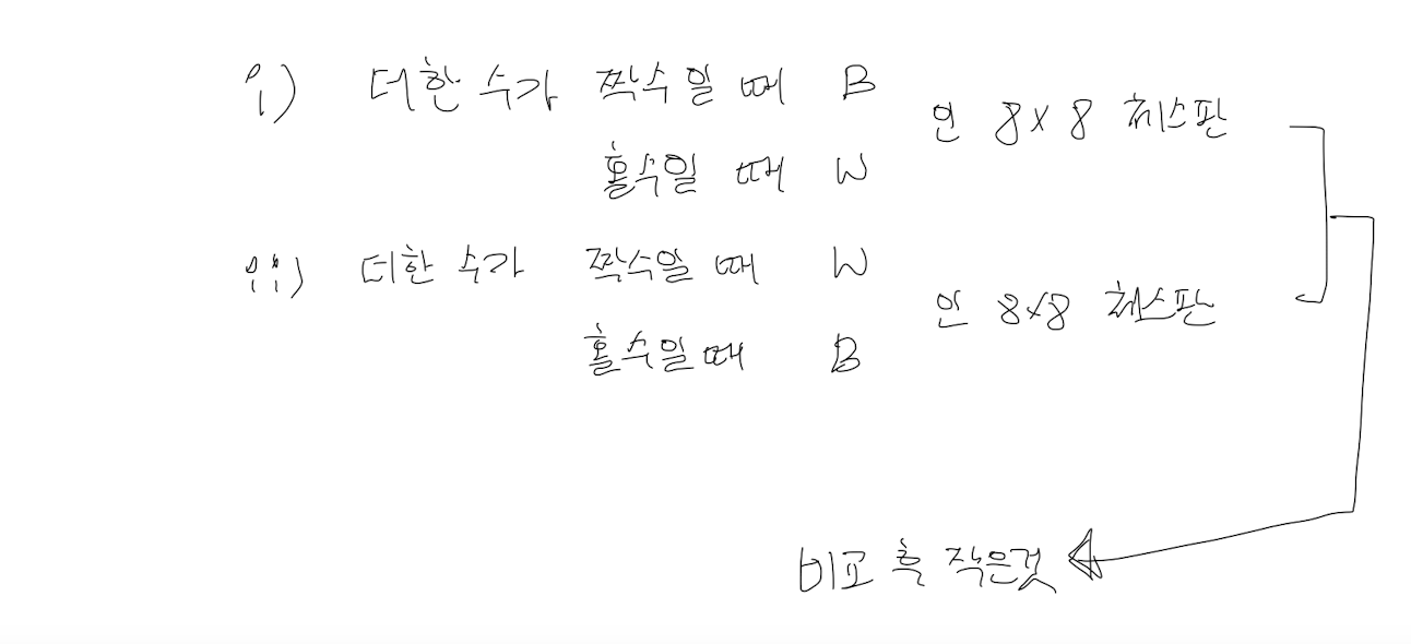 //cnt2 - 더한수가 짝수 W, 더한수가 홀수 B