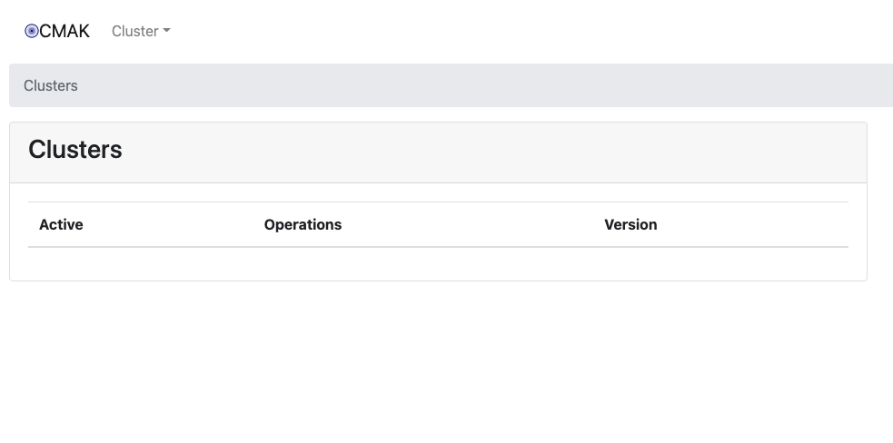CMAK을 실행 후 127.0.0.1:8080으로 접속하면 CMAK GUI가 떠야 하는데