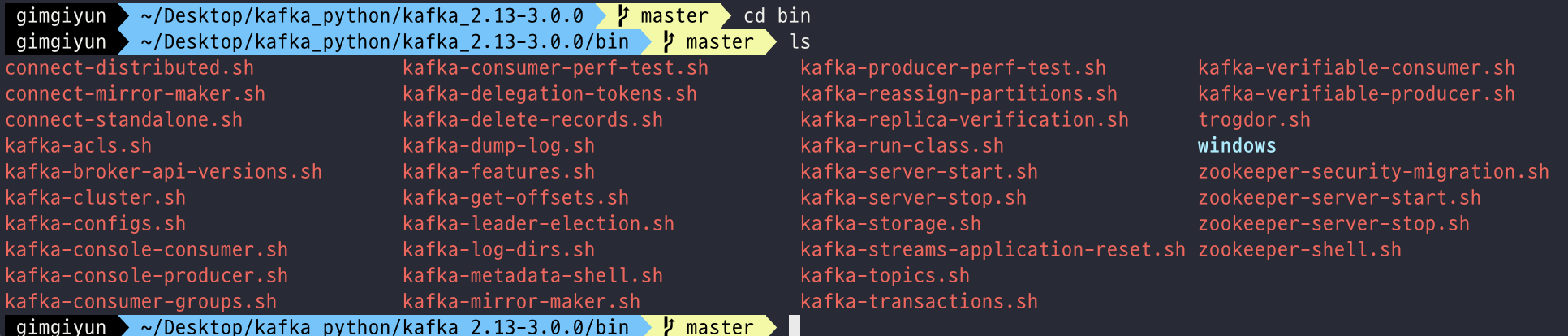 kafka의 bin 디렉토리에 들어가보면 여러가지 kafka 관련 스크립트 파일이 있다