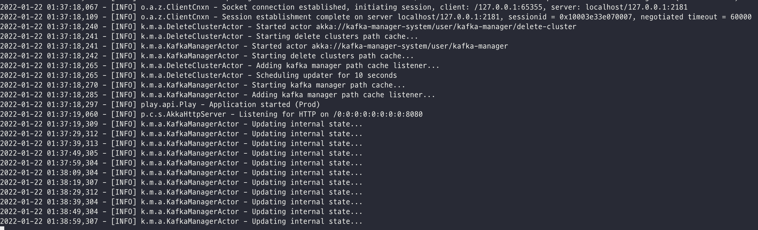 ZooKeeper -> Kafka -> CMAK