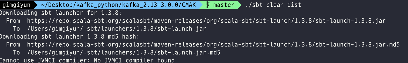 CMAK sbt 관련 issue인데 원래 java 11이 설치되어 있어야 zip 된다고 한다
