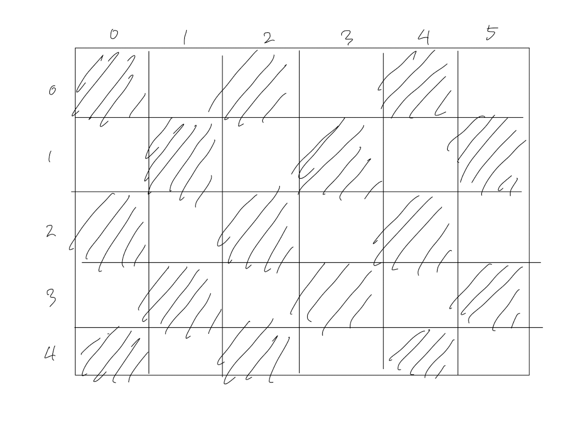 대각선으로 생각해본다면 (가로index + 세로 index) 가 홀수이냐 짝수이냐에 따라 나뉜다.