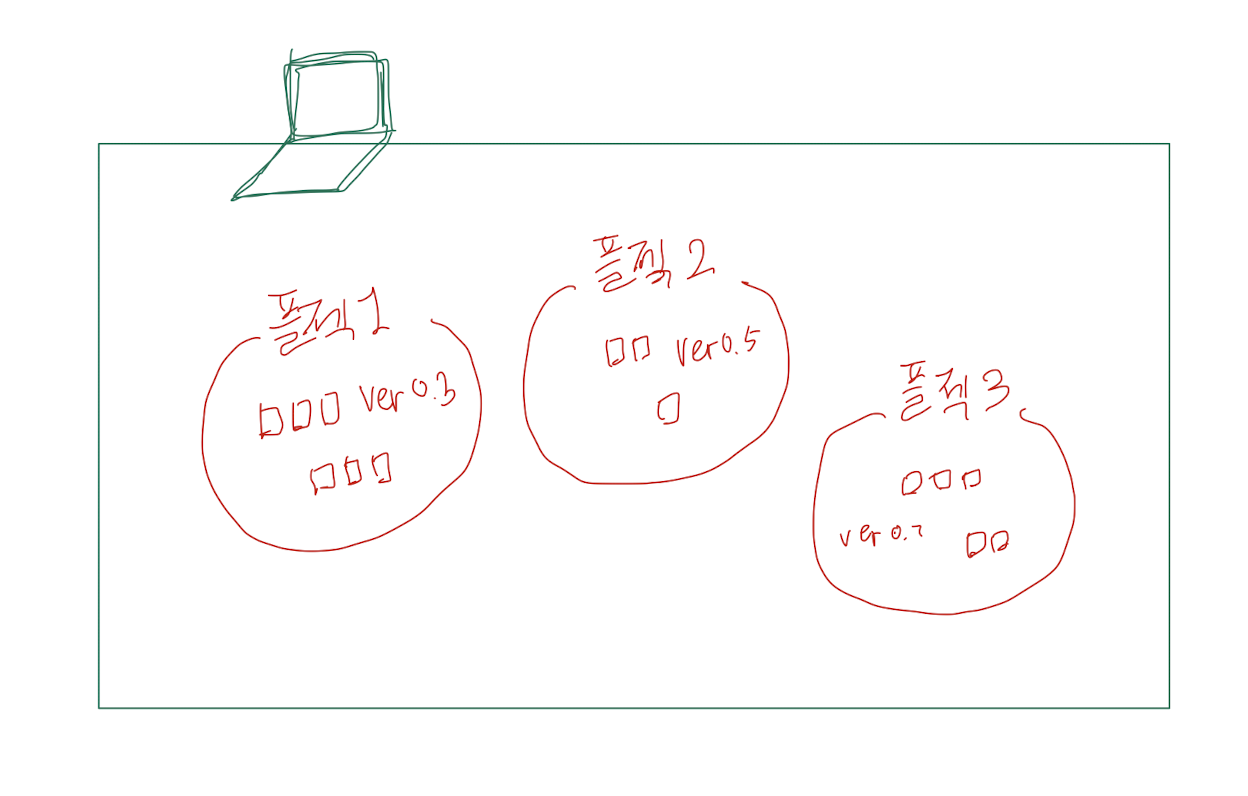 이렇게 프로젝트 마다 가상 개발 환경을 만들어 주고 그 위에서 놀게하면