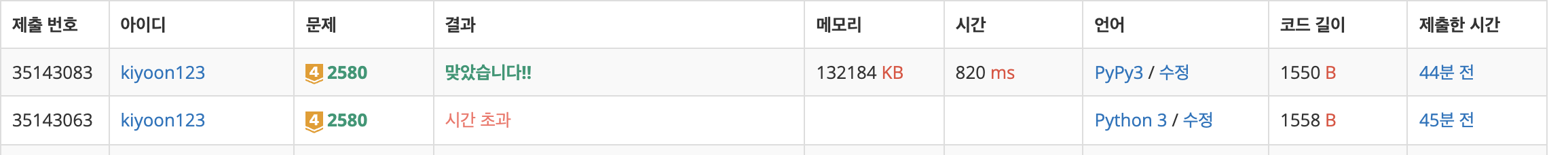 python3 에서는 시간초과가 발생했고 pypy3에서는 820으로 넉넉히 통과했다